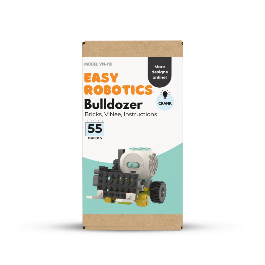 Jump-start your child’s STEM journey with the Easy Robotics–Bulldozer Kit, which includes the ViNee hub, building bricks, and step-by-step instructions. Learn the simple machine concept of a LEVER through hands-on building and playful experimentation.
